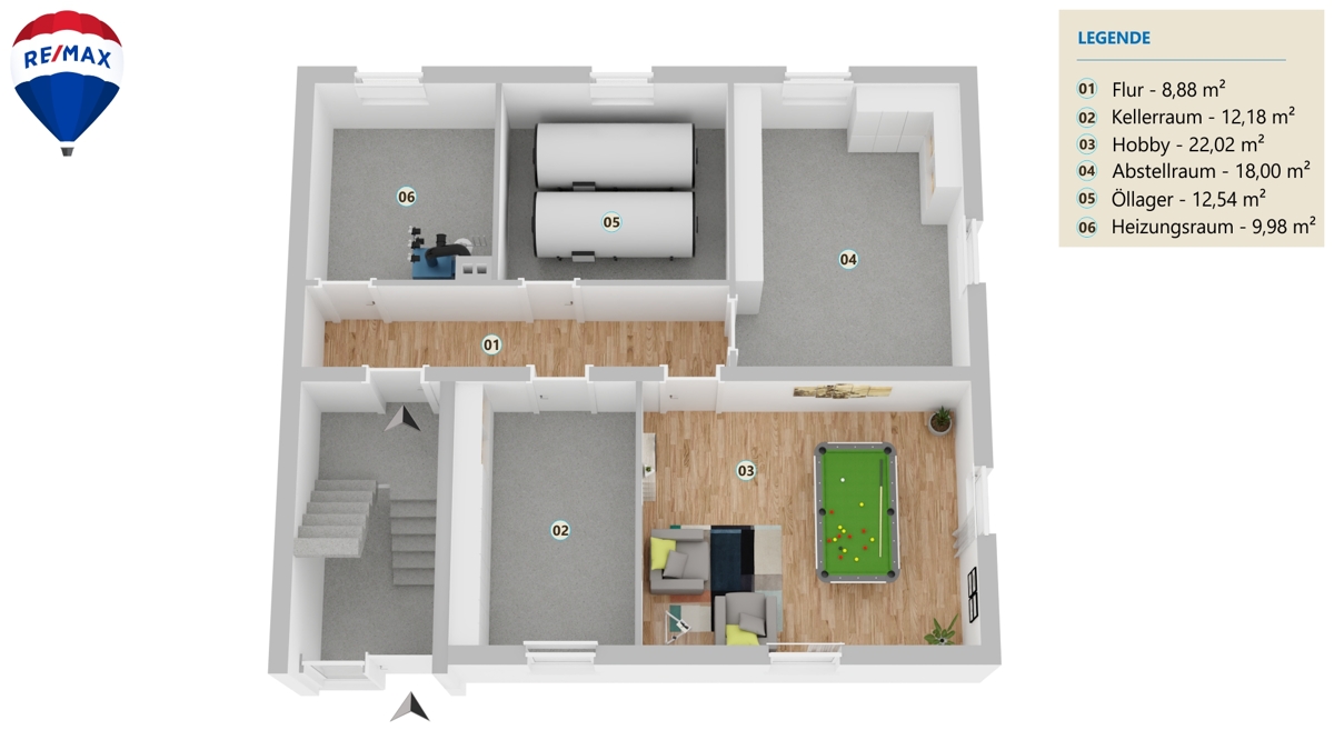 -> das voll unterkellerte Kellergeschoss bietet viel Platz für Abstell- und Lagermöglichkeiten.